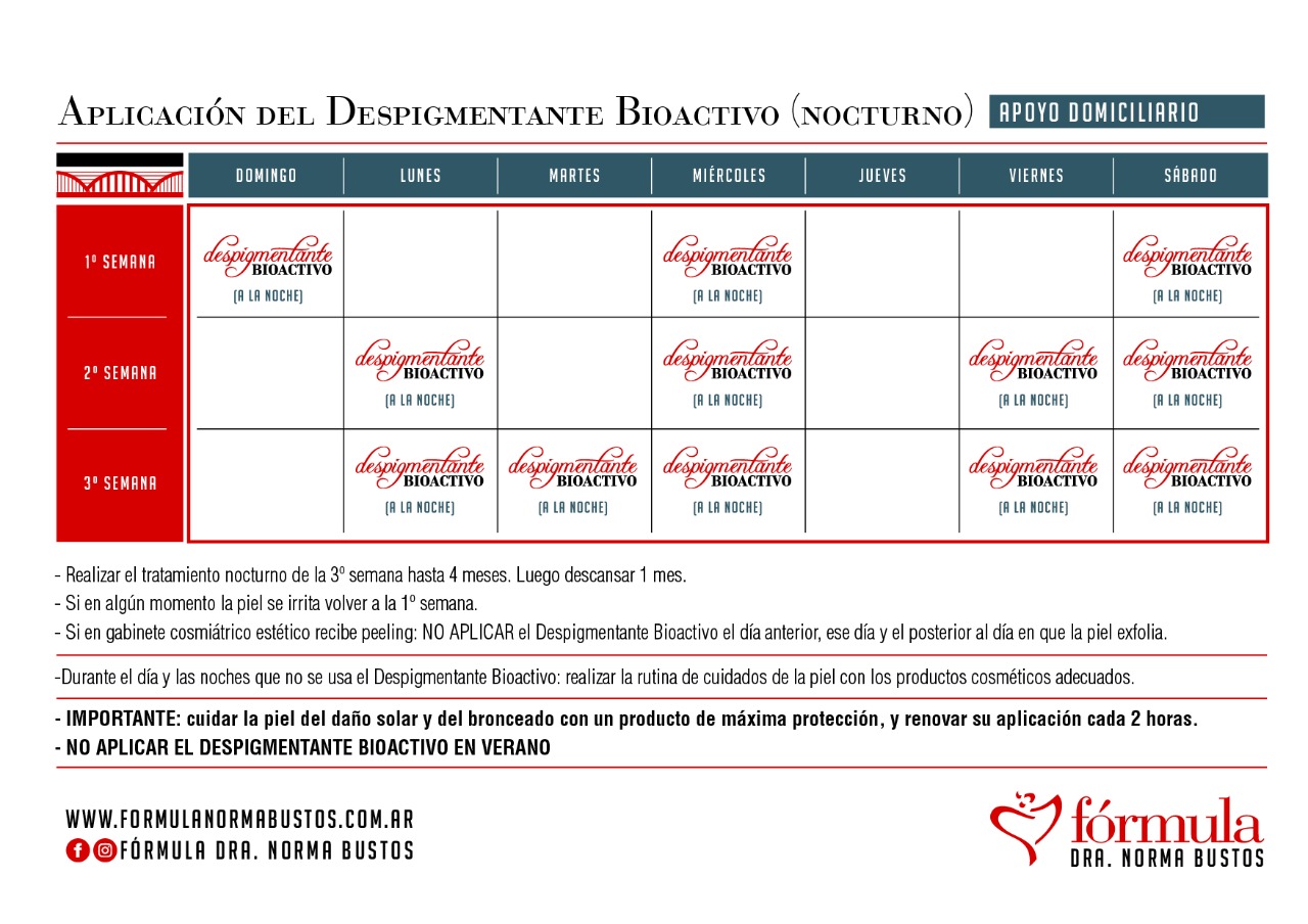 Cuadro de la utilización del Despigmentante